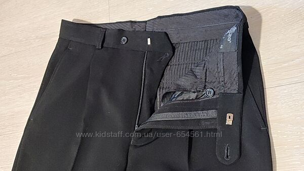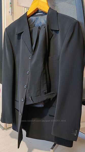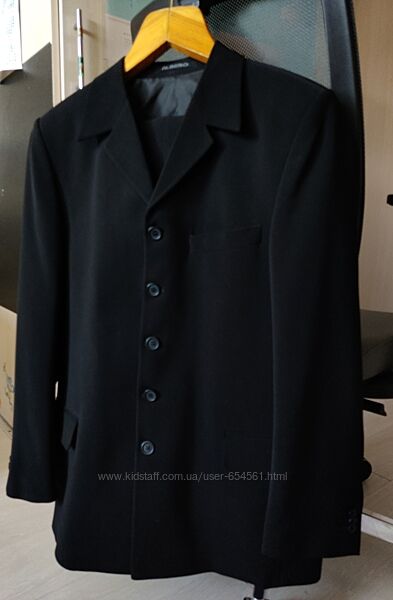 Костюм был одет 2 раза (с последующей химчисткой. Без потертостей, пятен, прочих изьянов по ткани. Состояние нового. Но так как долго висел в шкафу без дела, надо перед использованием ещё раз минимально его почистить/освежить). Производство - Италия. Цвет - матово-черный (на фото взяла светлее тон, чтобы видно было детали), подкладка также черная, ткань без узоров. Абсолютная классика в стиле.Состав ткани: 40% - лён, 35% - вискоза, 25% - полиестр.