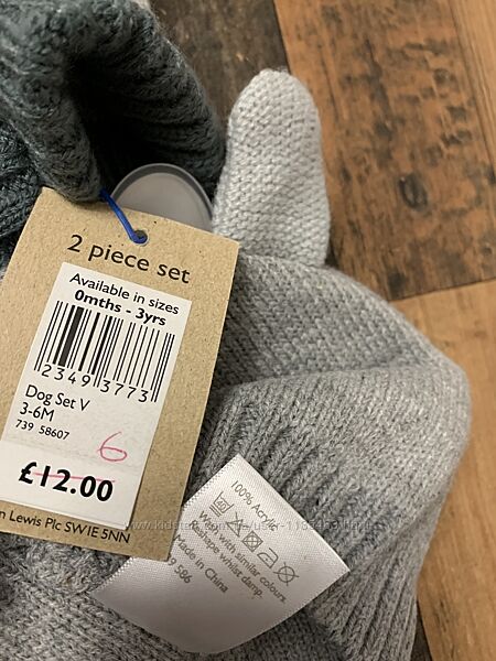 Комплект шапка та рукавички John Lewis на 0-3 міс.
