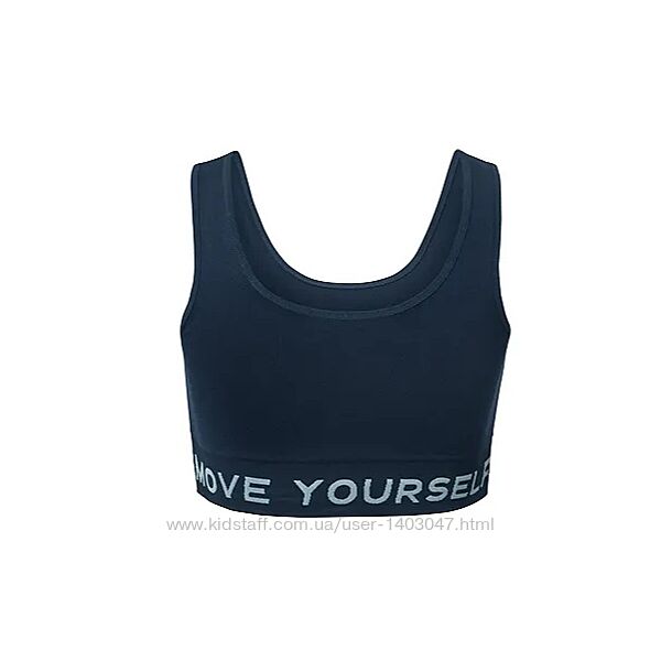 спереду і ззаду двошаровий,кругла горловина, ребриста структура та текстова смуга на ремінці.