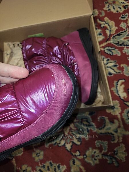 Продам чудові зимові чоботи фірми Kamik .Чоботи термо ,витримують температуру від -10 до -23 градусів .Розмір 34 ,більшомірять довжина устілки 23 см,тому підійдуть і на р.35 .Колір малиновий ,дуже гарний .Стан відмінний , вдягали разів три ,не більше .Із нюансів -показала на фото 6, трохи здерли на носку під час катання на гірці .Ціна 550 грн .
