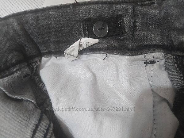 Джинси для хлопця "Reserved", розмір 152 смДжинси в гарному стані, насиченого сірого кольору, всі потертості рідні. Модель більше схожа на скінні, але посадка зручна, повна, на стандартні параметри, є утяжка. Джинс тягнеться, застібаються на блискавку і гудзик, 4 кишені. Із недоліків, дивіться фото 7, дитина на майданчику зачипилася, заштопане місце, воно повністю між ногами, тому зовсім не видно.