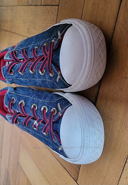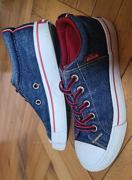 Ідеальний стан, крім п´ятницю, є фото, на зовнішній вигляд не впливає, в ціні враховано. Верх джинсовий, яскравий, не подряпана гума, застібка на прогумових шнурках, зручні і м´які всередині.Розмір 31-32, UK 13 1/2