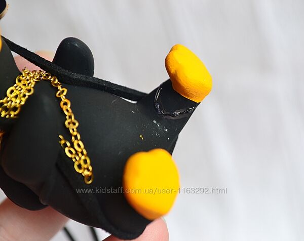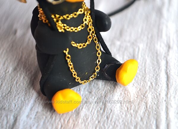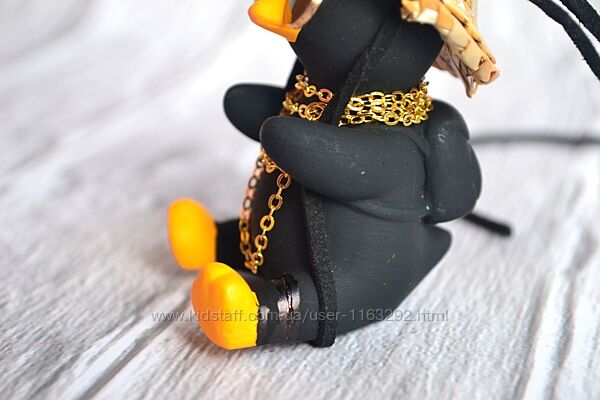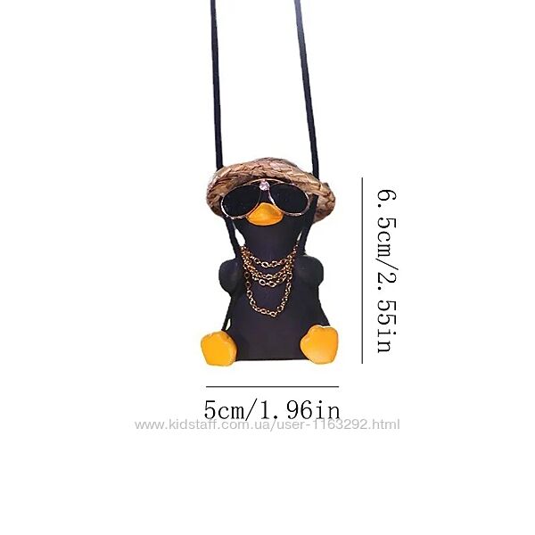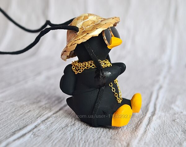Підвіска на зеркало автомобіля гусь чорний в окулярах і капелюсіНюанс: фигурки-подвески с заклеенными кусочками, у кого-то приклеена лапа, у кого-то крыло (на фото показано)