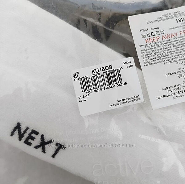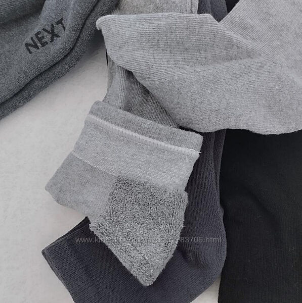 махровая стопа носки eur 46-49 Next 1 пара - 105 грн. размер UK 11.5-14, eur 46-49 / 4 черные п, 4 белые п. 4 серые п.// Состав: 80% хлопок, 18% нейлон, 2% эластан. Средняя длина. Идеальная посадка благодаря тонкой нити эластана. Аккуратный шов на мыске для комфорта. Носятся дольше обычных носков, благодаря содержанию нейлона в их составе. Махровая стопа.