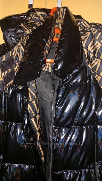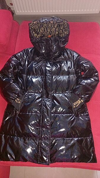 В идеальном новом состоянии. Ооочень качественное,непромокаемое,немаркое,непротираемое -вечное!!!! Тёплое, ветром не продувает. Можно и в сильный мороз. На фото блестит из за вспышки в реалии просто переливается. Пальто супер необычное такого не будет ни у кого! Производство Италия.Длина 83 см
