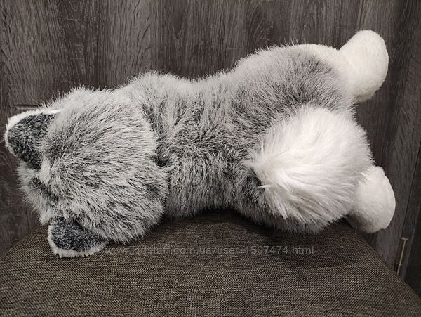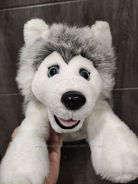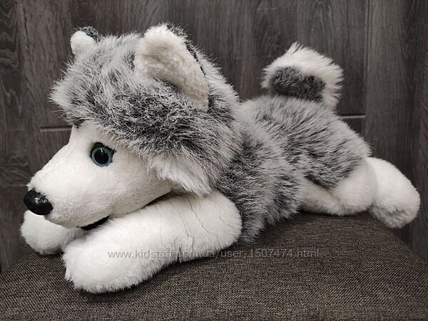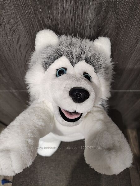 Очаровательный щенок хаски станет верным другом Вашему ребенку, хранителем детских секретов и незаменимым участником детских игр. Игрушка очень реалистичная, мягкая и пушистая.Игрушка в идеальнейшем состоянии. Пузико белоснежное.