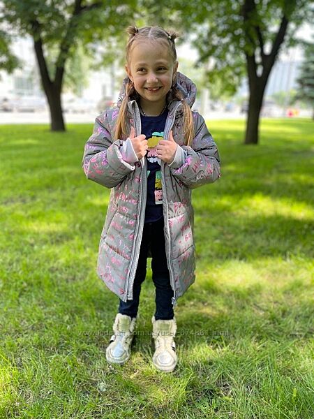 Світловідбивна принтова подовжена курточка. Зручний капюшон із додатковою фіксацією. Дві прорізні кармани з боків. Манжети для додаткового захисту від холоду. Застібка на молнию з вітрозахисною планкою. Низ виробу фіксується за допомогою куліси, регулюючи ширину і силует. Температурний режим від -5 до -25 °С.