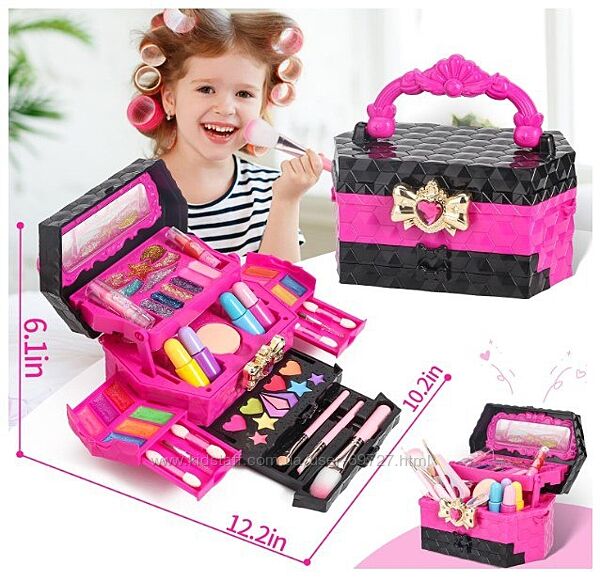 Kids Makeup Kit for Girl, Princess Toys Real Washable Cosmetic Set with Mirror.Подаруйте своїй принцесі мрійливий макіяж за допомогою дитячого косметичного набору, виготовленого із безпечних матеріалів найвищої якості, що відповідають міжнародним стандартам безпеки дитячих іграшок (CPSIA, CPC, ASTM).