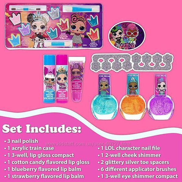 Набір косметики для макіяжу LOL Surprise приносить стільки радості, що ваші дівчата чудово розважаються, демонструючи свій блискучий стиль! Блиски для губ, лаки для нігтів та тіні з кистями у супер класній валізі, прикрашеній улюбленими персонажами LOL. Цей набір, безумовно, стане хітом серед ваших дітей.