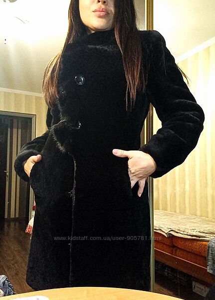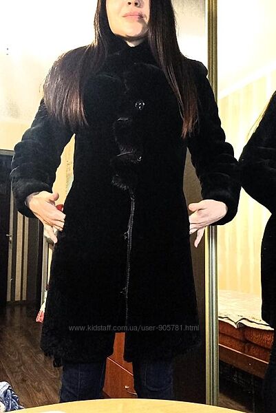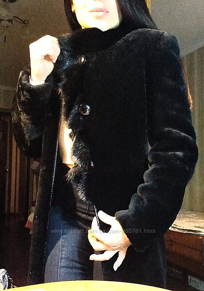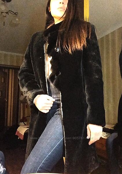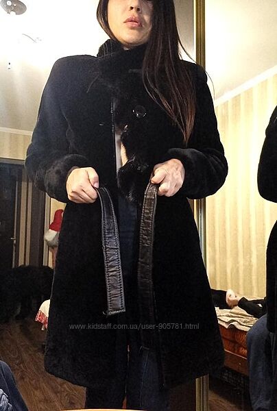 Мутонова шуба з норкою і шкіряним ременем, нова з бирками. Розмір вказаний S, одягнути на М. Комір стійка на магніті щільно закриваєгорло, шуба на гачках.