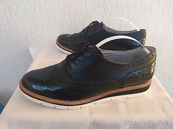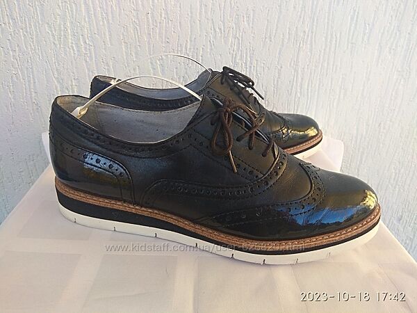 Туфли оксфорди кожанние Tamaris р.38, сделанни в Германии, оригинал. Состояние практически идеальное. Кожа натуральная+ искуственная кожа лакированная снаружи,внутри кожа натуральная+текстиль. Длинна по стельке 25 см.,ширина 7.8 см.Другие объявления продавца