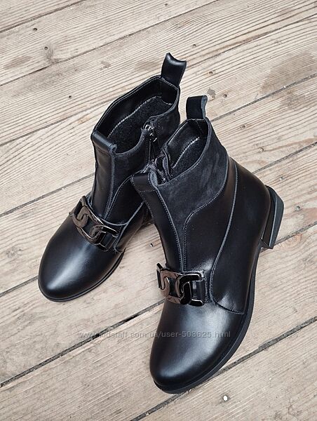 Подробное описание: Демісезонні модельні жіночі чорні черевики із натуральної шкіри