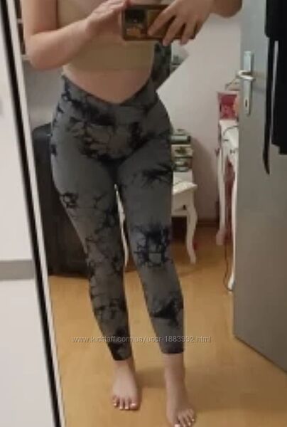 Шикарні спортивні легінси пуш-ап з фігурним копрессованним поясом для занять фітнесом , еластична та плотна тканина, швидкосохнуча, вологовідвідна. Добра утяжка. РозмірМ /L : полуобхват талії в ненатягнутому стані 33 см довжина легінсов 83 см розмір вказаний на легінсах L , але добре підійдуть на розмір М.
