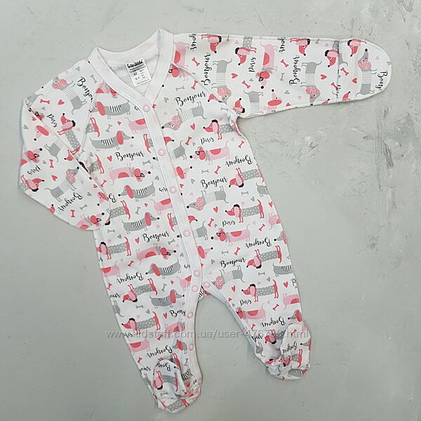 Комплект складається з чоловічка і шапочки.Чоловічок із зовнішніми швами, ручки можнаповністюзакривати. Застібається на кнопки.
