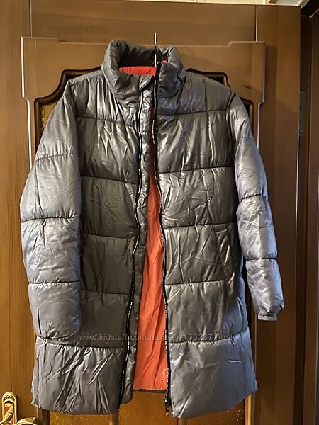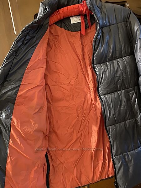 Пуховик Zara , удлинённая куртка с капюшоном Рост 152, на 11-12 лет цвет- графит в идеальном состоянии Довжина - 79 см, ПОГ - 51 см, довжина рукава - 51 см, плечі - 46 см.