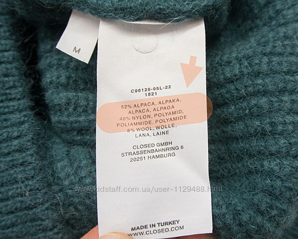 Обратите внимание на состав: 52% альпака Это очень нежно, мягко и тепло), 40% нейлон (препятствует деформации изделия и продлевает срок службы), 8% шерсть.