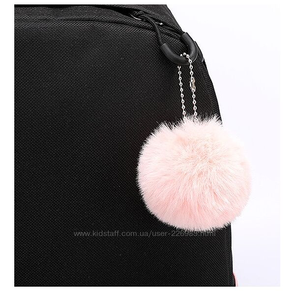 Рюкзак для дівчаток середньої та старшої школи в стилі Anime — це приємні емоції щодня та стимул успішного навчання!Приємний сюрприз — рожевий хутряний помпон у ПОДАРУНОК!
