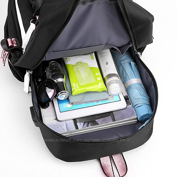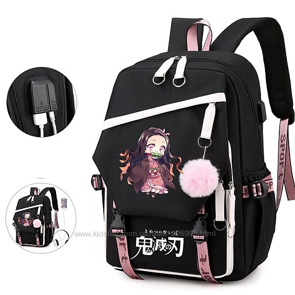 Подробное описание: Шкільний підлітковий рюкзак з USB та хутряним помпоном Аніме для дівчинки