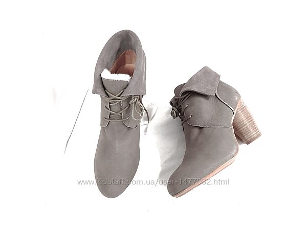 Нові, сток, не носилисяВерх м´який якісний натуральний нубук + натуральна замша, всередині текстиль, на внутрішній частині язичка штучне хутро-овчинка, зручний каблук, чудовий дизайн. Колір тауп. Стильні та комфортні.