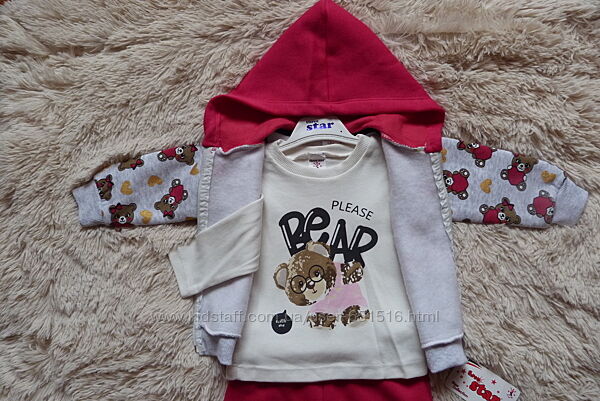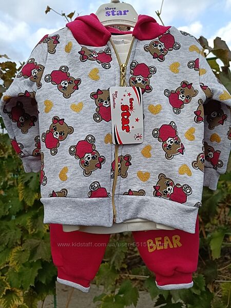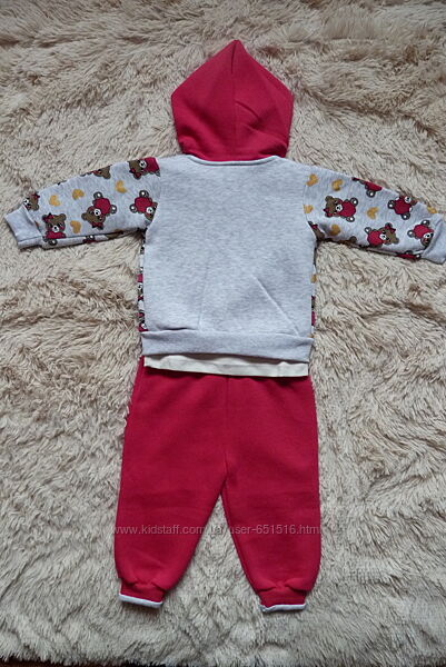 Подробное описание: Яскравий утеплений костюм трійка для дівчинки з ведмедиками, Турція, 80-86