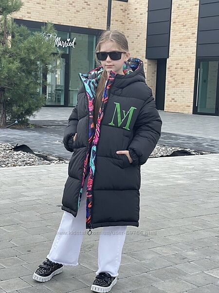 Двухстороннее зимнее пальто для девочки. Р.116-134