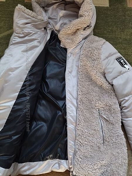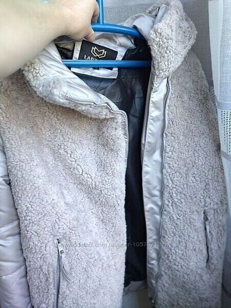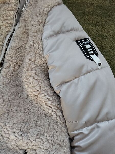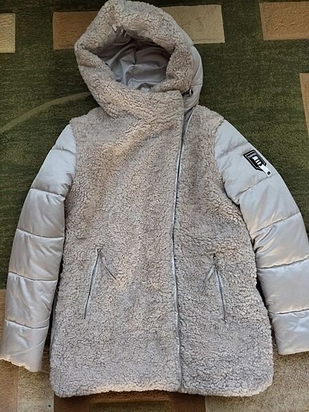 Очень красивый молочный цвет, модные вставки барашек, капюшон не отстегивается на нем есть утяжка, кармашки на молнии, легкая стильная. Размер 42. Замеры - длина по спинке 69см, плечи 41см. длина рукава от плеча 60см., ширина под руками 48см. Вышлю новой или укрпочтой за счет покупателя.