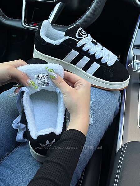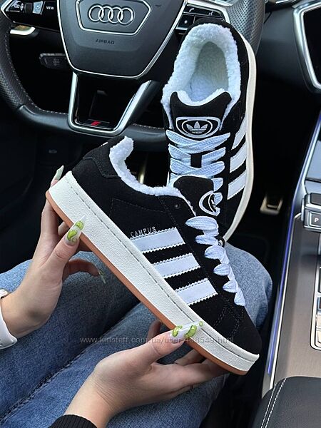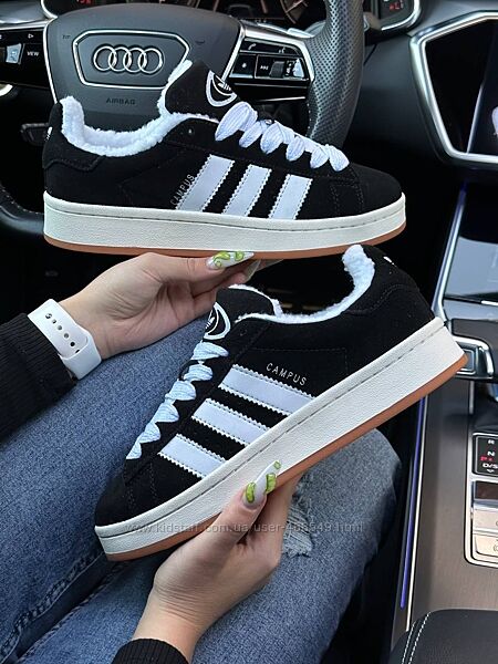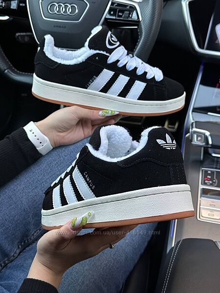 Подробное описание: Зимові жіночі кросівки з хутром Adidas Campus Black white gum, замша