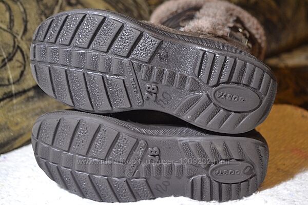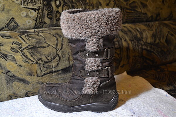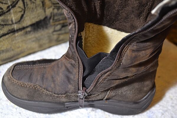 Термосапожки на дівчинку від відомого німецького бренду Ricosta (Рікоста). Зимові і демісезонні – холодна весна-осінь. Б/у. Розмір 28. Устілка – 18 см, на ніжку 17,5 см. Всередині – коричневе і біле хутро. Верх – натуральний замш і мембранна непродувна тканина – коричнева з переливами – з мембраною типу SympaTex. Внизу змійок є захист від попадання снігу та продування – спеціальна тканинна вставка. Без нюансів. У відмінному стані.#100% передплата, обміну і повернення немає.