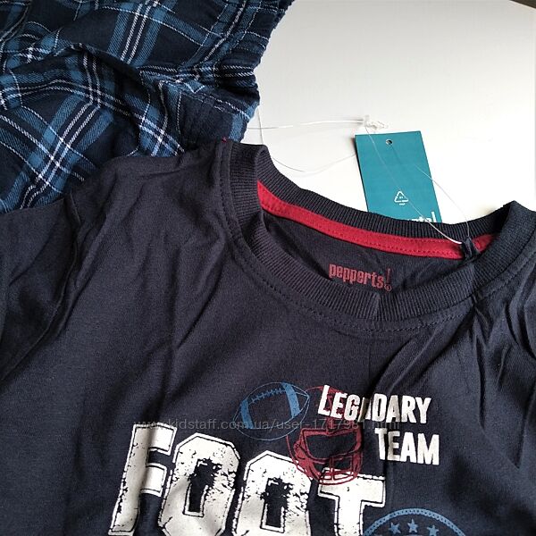 Размер на бирке: 10-12 лет (146-152 см), подходит примерно до 156 см.Универсaльнaя подростковая пижама от бренда Peppperts® состоит из трикотажного лонгслива и фланелевых штанов.
