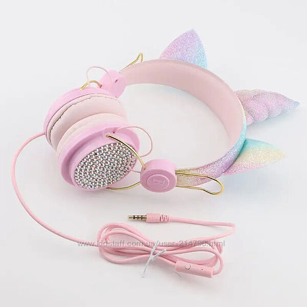 Дитячі навушники з вушками та рогом єдинорога. Рожеві навушники Єдиноріг