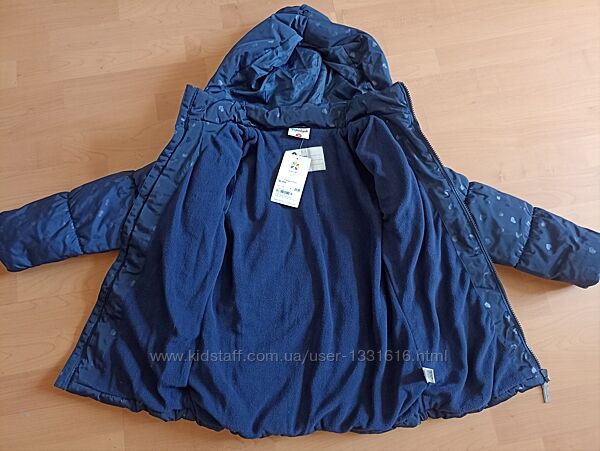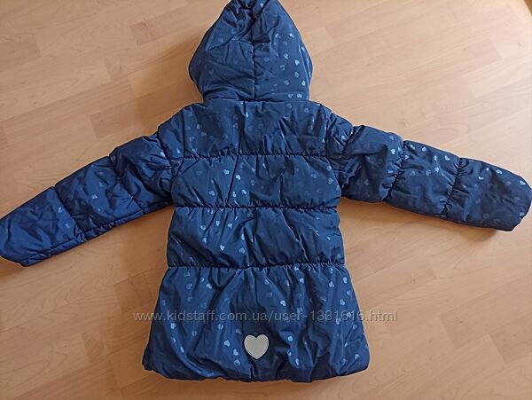 Зимова термокуртка німецького бренда Topolino. Утеплена синтепоном, флісовою підкладкою. Капюшон не відстібується. Куртка тепла, зручна, високий м´який ворот. Таку саму донька носила меншого розміру, а цю переросла.Довжина 55см, ширина під рукавами 34 см, плече 7,5 см, ширина плечей 33см, ширина спинки 30, рукав 45см.