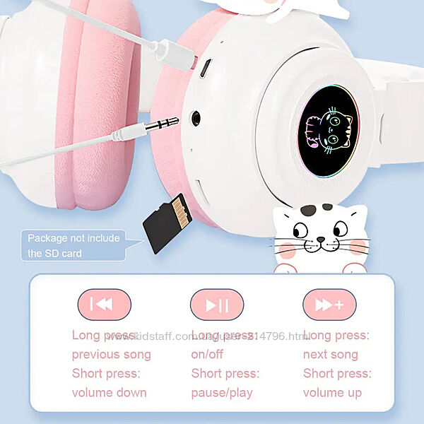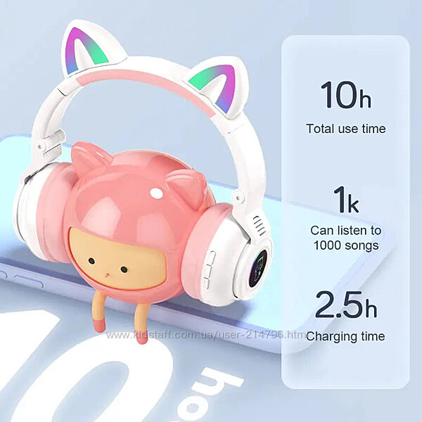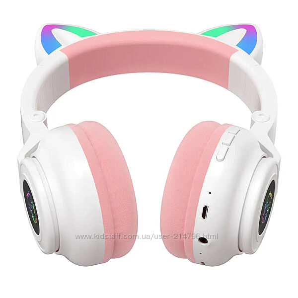 Подробное описание: Дитячі бездротові блютуз навушники з котячими вушками та підсвічуванням.
