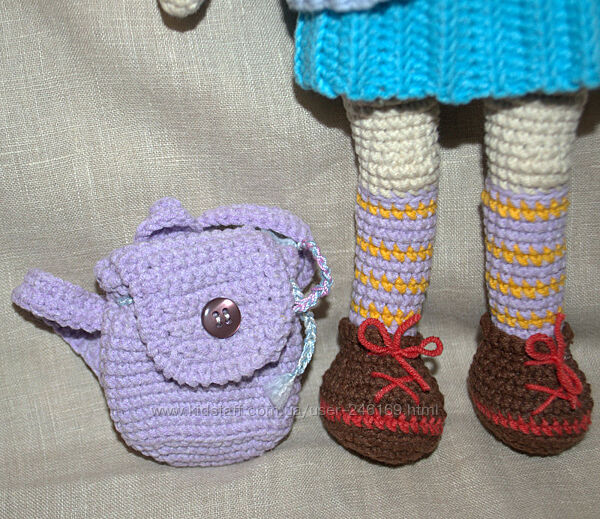 Ціею лялькою може гратися дівчинка віком від 4-х років,каркасу немає.Але із виробом ручної роботи завжди потрібно користуватися обережно.Одягати потрібно знизу.Приємним додатком є наявність пакету одежи,хоча Ваша дитина сама зможе ще щось додати.Зріст іграшки 34 см.Вітаю, мої любі Українці!!!Дякую за те,що завітали до мого оголошення!