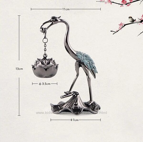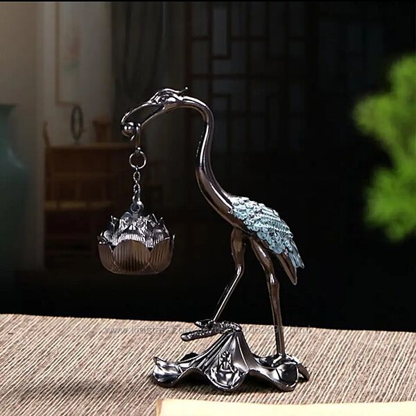 Елегантна та довговічна многоразова горілка у вигляді птаха з лотосом.Унікальний дизайн, метал гарної якості та стійка конструкція дозволять використовувати цю річ довгий час для затишної атмосфери в оселі.