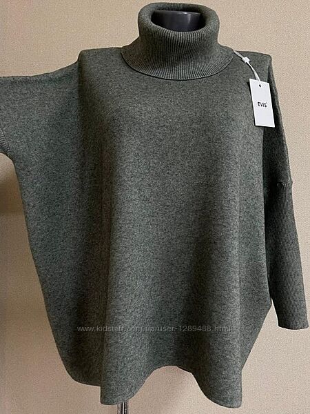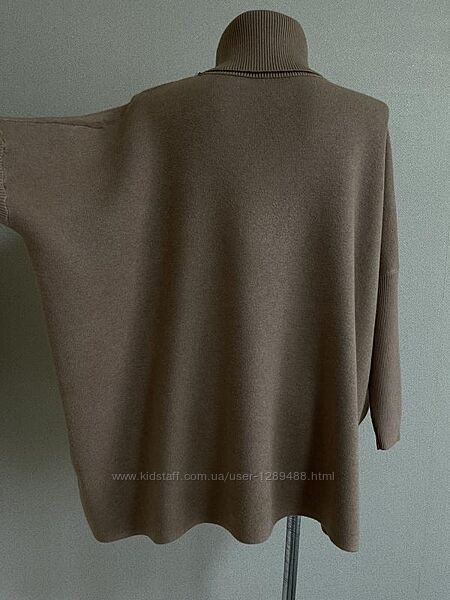 Крутой,модный,элегантный статусный плотный свитер-балахон,разлетайка,оверсайзКрасивая,заметная,трендовая в этом сезоне,просторная модель теплого,толстого свитера, свободного кроя.Плечи-оверсайз,без плечового шва,цельные с рукавом на высоком манжете.Стильный,объемный воротник с отворотом под горло.Модель свободного,комфортного кроя,из толстой,плотной, мягкой,качественной,очень теплой ткани,приятной к телу.,в составе которой есть шерсть и кашемир.Красиво смотрится на любых параметрах,-на худеньких стройных,и на пышных формах.В движении свитер смотрится очень круто,-просторным на фигуре и рукавом-манжетом по руке.