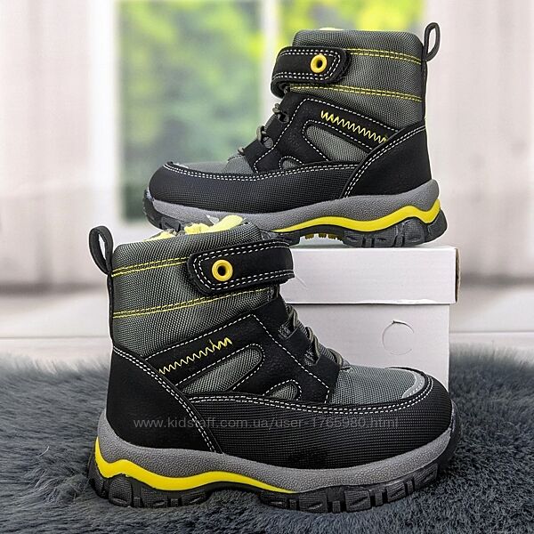 Подробное описание: Ботинки зимние для мальчика серые с желтым Geto 5197