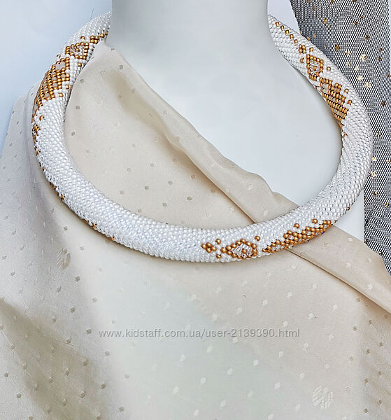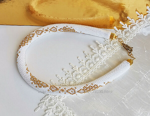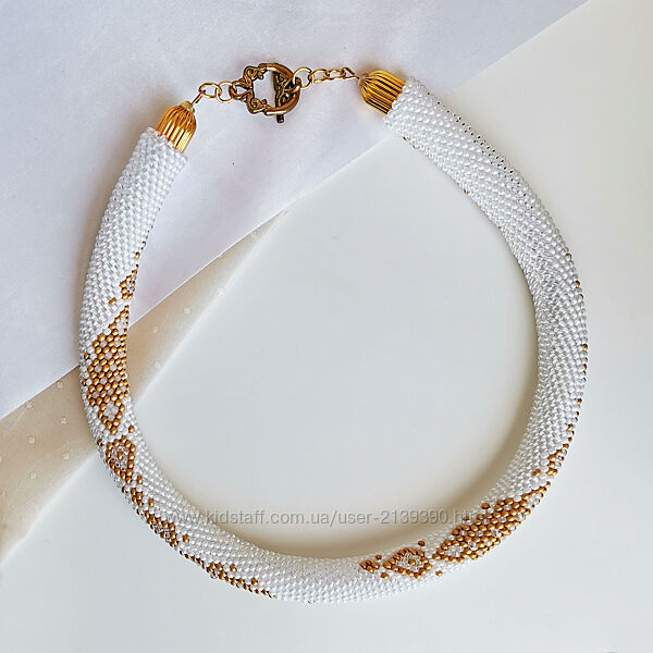 Подробное описание: Прикраса із бісеру кольє-джгут Біле золото