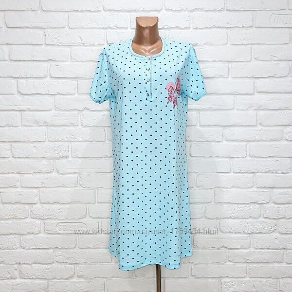 Нічна сорочка-туніка 4XL Miss Moda Туреччина. З короткими рукавами і центральною застібкою на ґудзиках. Матеріал 100% бавовна. Колір: рожевий.