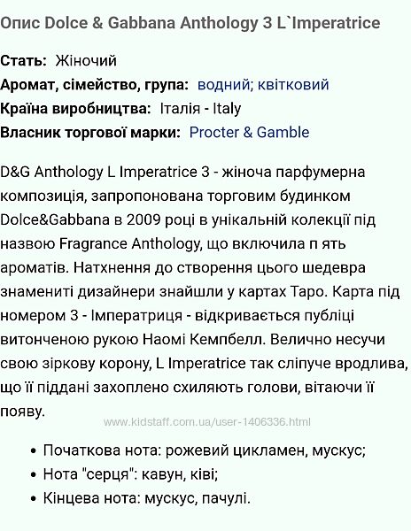 Подробное описание: Dolce & Gabbana Anthology 3 LImperatrice розпив