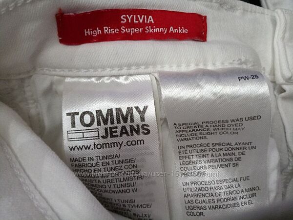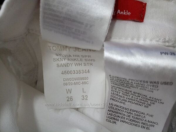 Женские белые джинсы скинни Tommy Hilfiger Sylvia Skinny Оригинал. Art.N dw0dw09550 Новые. Один раз были стрианы, припачкались в магазине.Состав: 92% хлопок, 6% полиэстер, 2% эластан. Размер. 26 рост 32 Производитель-Тунис.