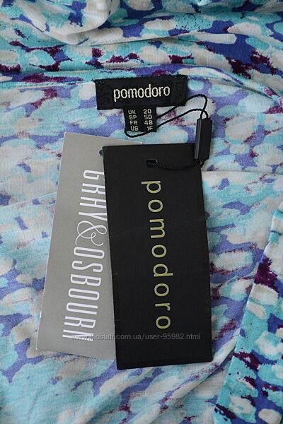 Легке, приємне, дуже якісне плаття від британського бренда Pomodoro. 100% віскоза, трикотаж, але майже не тягнеться, тонке, легке, приємнийколір, висока якість, плаття на сайті варті 85 фунтів, Можете загуглити.