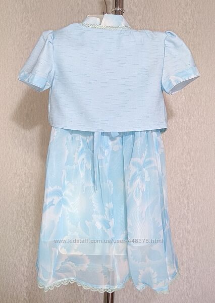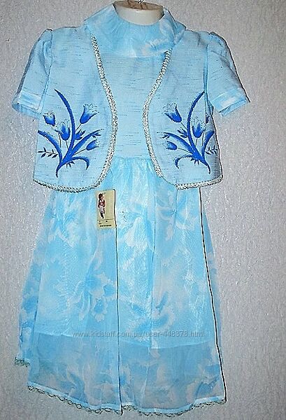 Нарядный комплект на девочку.Верх платья и болеро -лен.Низ платья -шифон Платье на х/б подкладке.