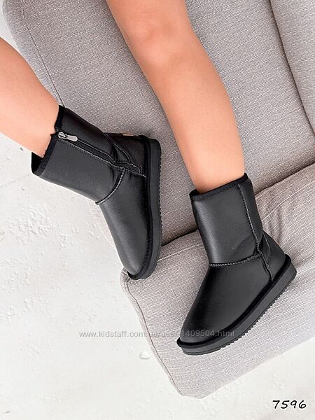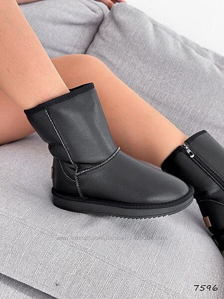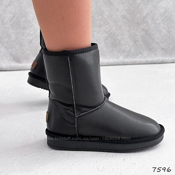 Середні по висоті шкіряні уггі. Дуже теплі та зручні, міцна морозо-холодостійка підошва прошита по колу. Зміцнена пятка, дуже добре тримає форму, не буде скошуватись. Всередині штучне хутро, щільне та густе, ніжкам буде зручно та тепло. Найкраще взуття для зими.
