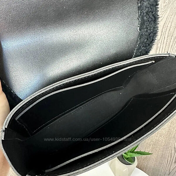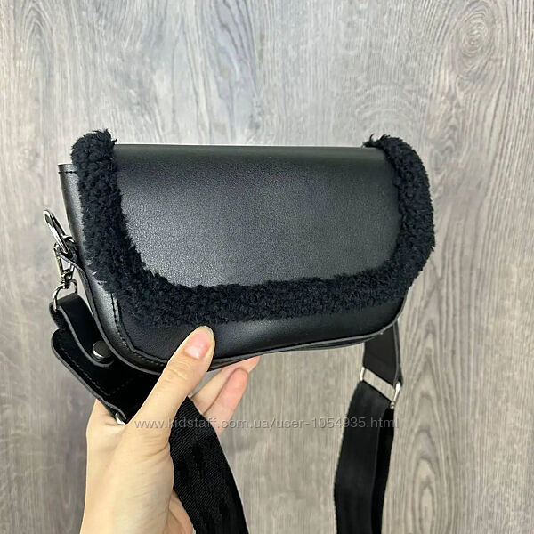 Маленька сумка з хутряною окантовкою Матеріал: якісна та щільна екошкіра, добре тримає форму + натуральне хутро; Довжина: 19 см; Ширина на основі: 4 см; Висота: 14 см; Плечовий ремінь – у комплекті;