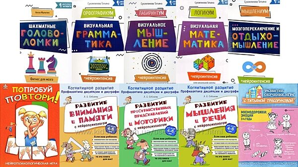 44) Комплект нейросборников, Мегамозг. 100 нейроупражнений (Логвина)
