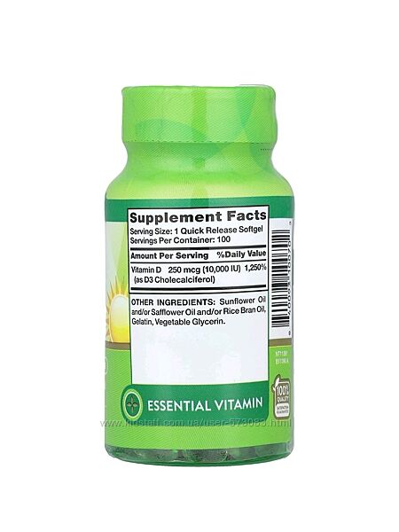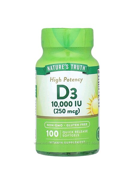 Подробное описание: Nature´s Truth витамин Д3 10000 МЕ - 100 капсул / США