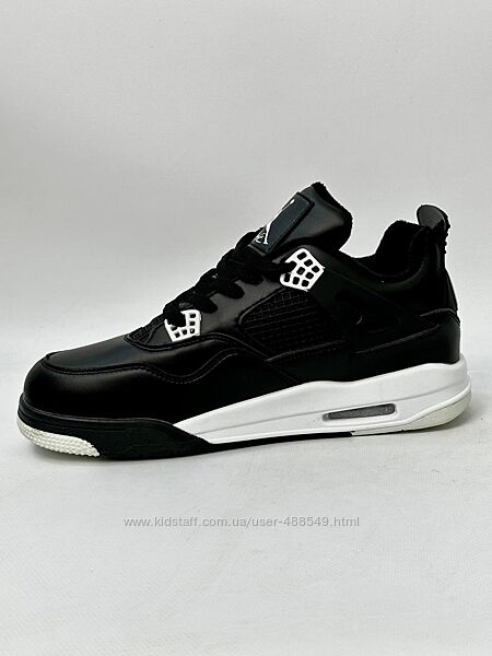 Подробное описание: Зимові чоловічі з хутром Nike Air Jordan 4 Retro, чорні з білим