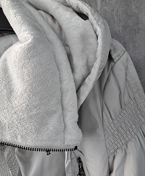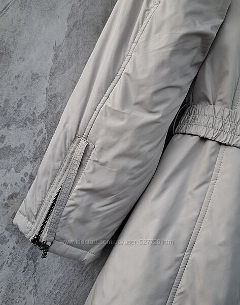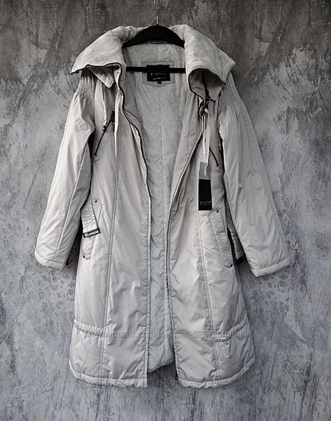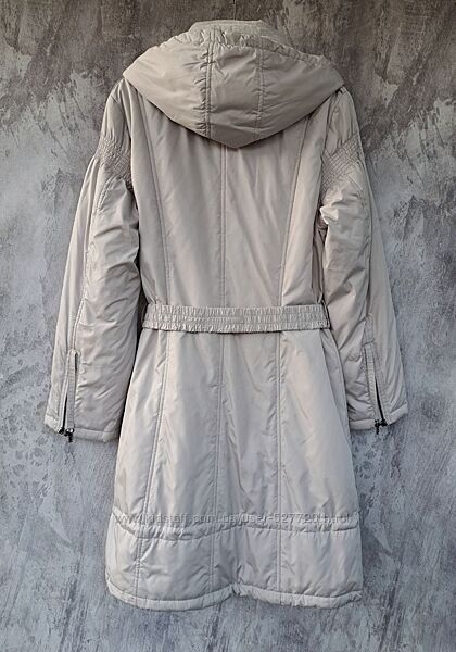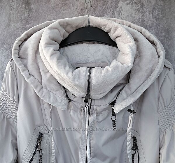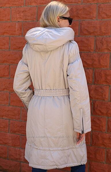 Женское демисезонное пальто с капюшоном. Модель приталенного силуэта, застегивается на молнию. В области груди имеются прорезные карманы на молнии, внизу боковые карманы, с внутренней стороны фиксируются кнопкой и один внутренний карман, застегивается потайной молнией. Высокий воротник регулируется резинкой на фиксаторах, капюшон по овалу лицарегулируется шнуровкой. Низ в рукавах на трикотажном эластичном манжете. Ширину внутри по низу можно регулировать. Капюшон и воротник с внутренней стороны утеплены искусственным мехом.