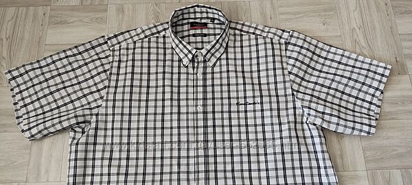 Три сорочки та одна поло-футболка короткий рукав (160 грн кожна). Розміри р.2XL-4XL. Заміри:1,2 фото: Нова сорочка біла у чорну клітинку французького бренду Pierre Cardin р.4XL. Напівобхват під руками 66 см; довжина по спині 80 см; плечі 51 см. Тканина: 35% бавовна, 65% поліестер.