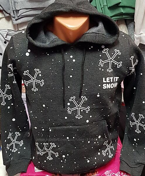 Худі зі сніжинками на байці в кольорах на зріст 146-170 худи